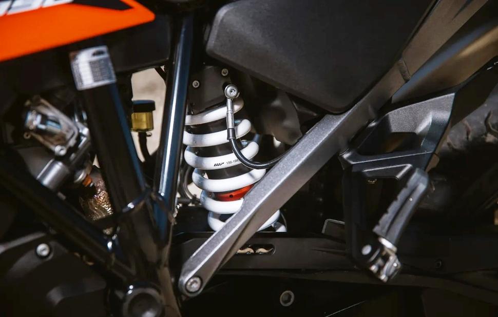 Что до железной части KTM 1390 Super Adventure S EVO 2027, то стальная решётчатая рама похожа на предыдущую и так же использует двигатель в качестве несущего элемента шасси. Но благодаря изменению диаметра трубок и толщины стенок жёсткость шасси повышена, и это привело к улучшению обратной связи, но без чрезмерной отдачи. Продольная жёсткость увеличилась на 13 процентов, поперечная - на 23 процента, а торсионная (на скручивание) - на целых 73 процента, что позволяет мотоциклу сохранять устойчивость даже на пределе возможностей шин.
