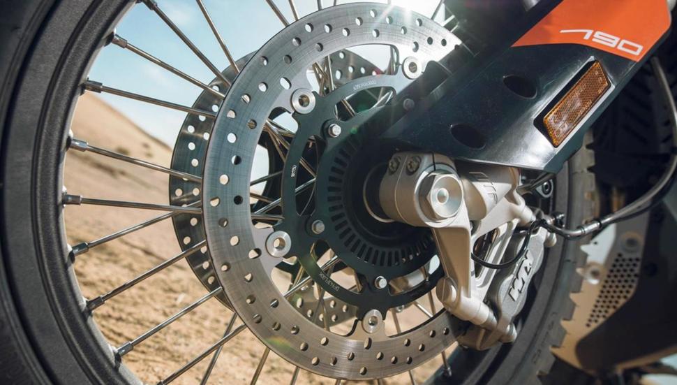 Вскарабкавшись в седло, включив передачу и тронувшись, понимаешь, откуда берётся разница в цене с 390-м. При езде по бездорожью малыш 390-й временами не слушается водителя и едет туда, куда его направляют камни и колеи, а 790-й просто прёт напропалую, как будто камни разбегаются, а ямы зарываются при виде него. Намного более мощные (как по размерам, так и по характеристикам) подвески XPLOR имеют ходы в 24 сантиметра на обоих концах, а у малыша - лишь 17 спереди и 17,8 сзади. Плюс 790-й Adventure R оснащён рулевым демпфером, а 390 Adventure - нет, и это тоже сильно влияет на курсовую устойчивость.