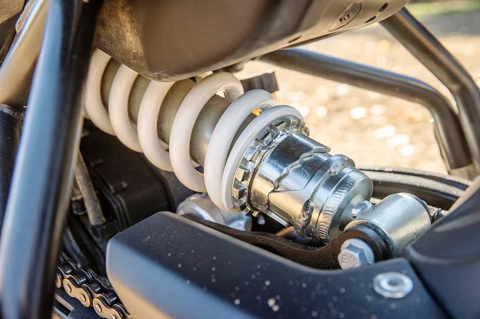 На переднем колесе ABS не отключается, но благодаря отличной информативности переднего тормоза усилие модулируется очень легко. Несмотря даже на откровенно асфальтовые шины Ceat. При некотором навыке отключение задней ABS позволяет пускать колесо в контролируемый занос. Педаль заднего тормоза имеет удобный ход и прогрессивность, что помогает избежать нежелательной блокировки. Когда задняя ABS включена, она вмешивается быстро и часто.